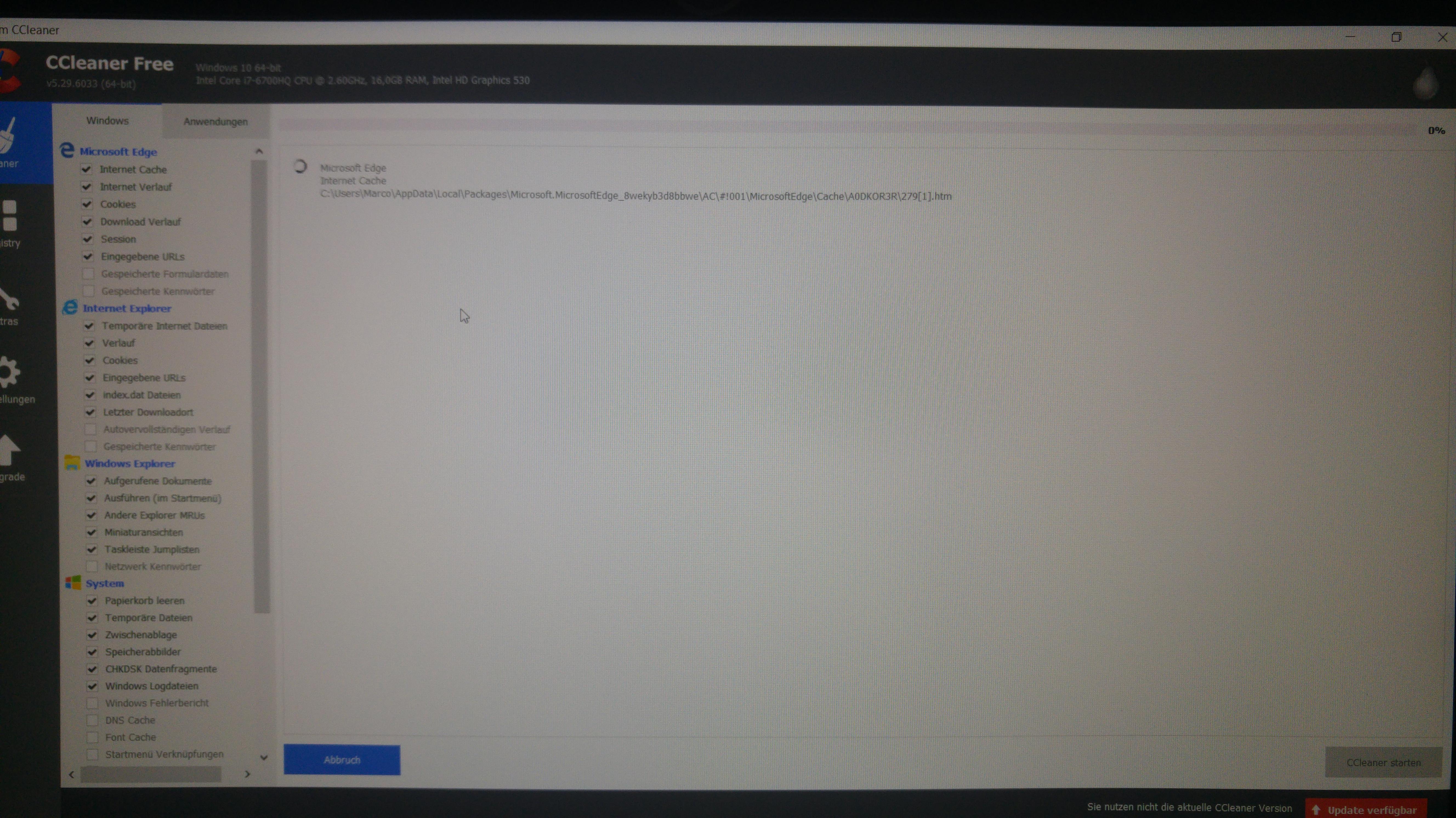 Auch CCleaner konnte ich nicht durchlaufen lassen. Bei der Analysierung blieb er bei Firefox stehen