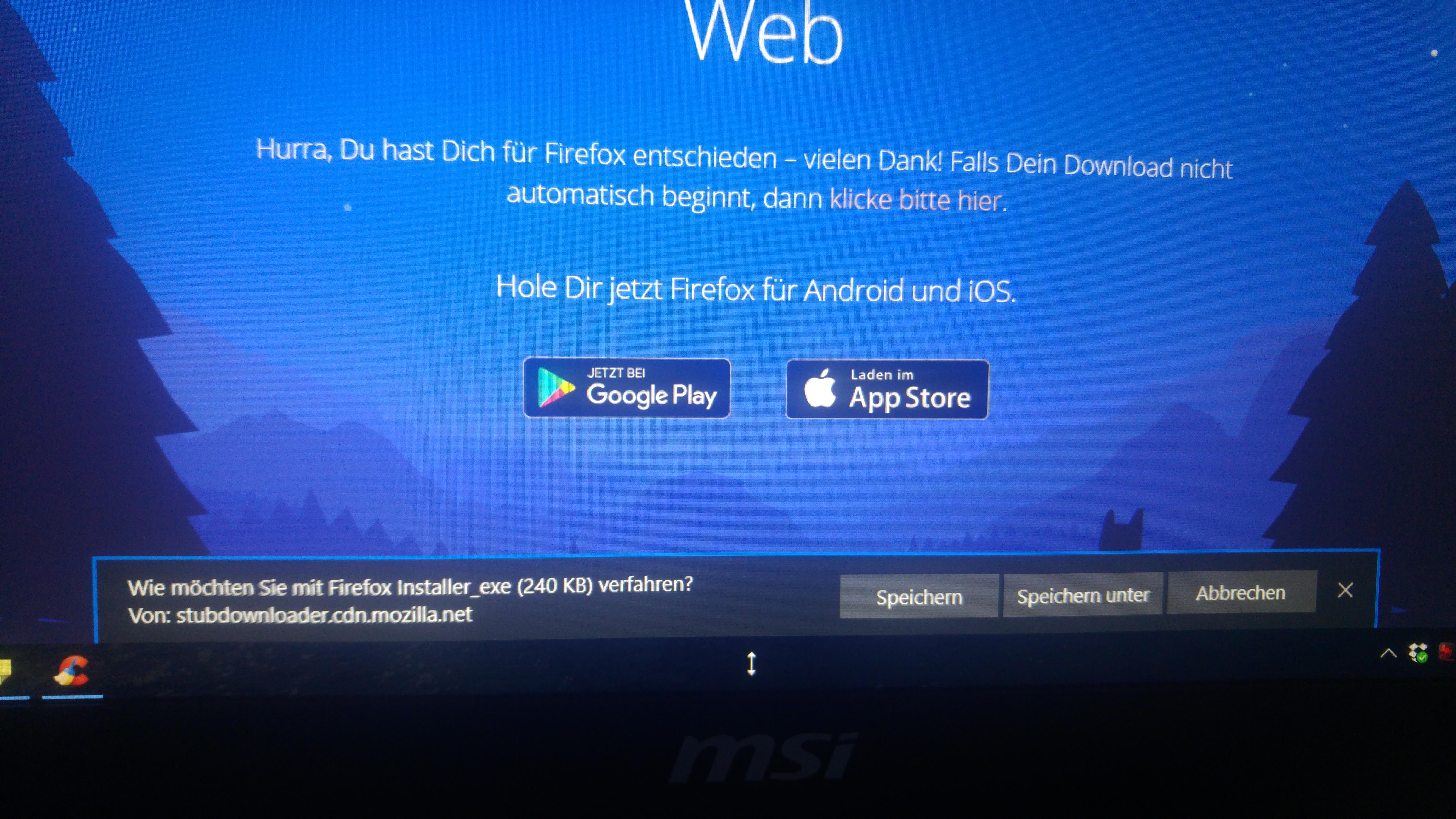 Danach habe ich Firefox deinstalliert und wollte es neu herunterladen. Bei der Anzeige "Speicher" oder "Speichern unter" konnte ich zwar was anklicken, aber es passierte rein gar nichts. Auch in der Taskleiste konnte ich nichts mehr anklicken:
