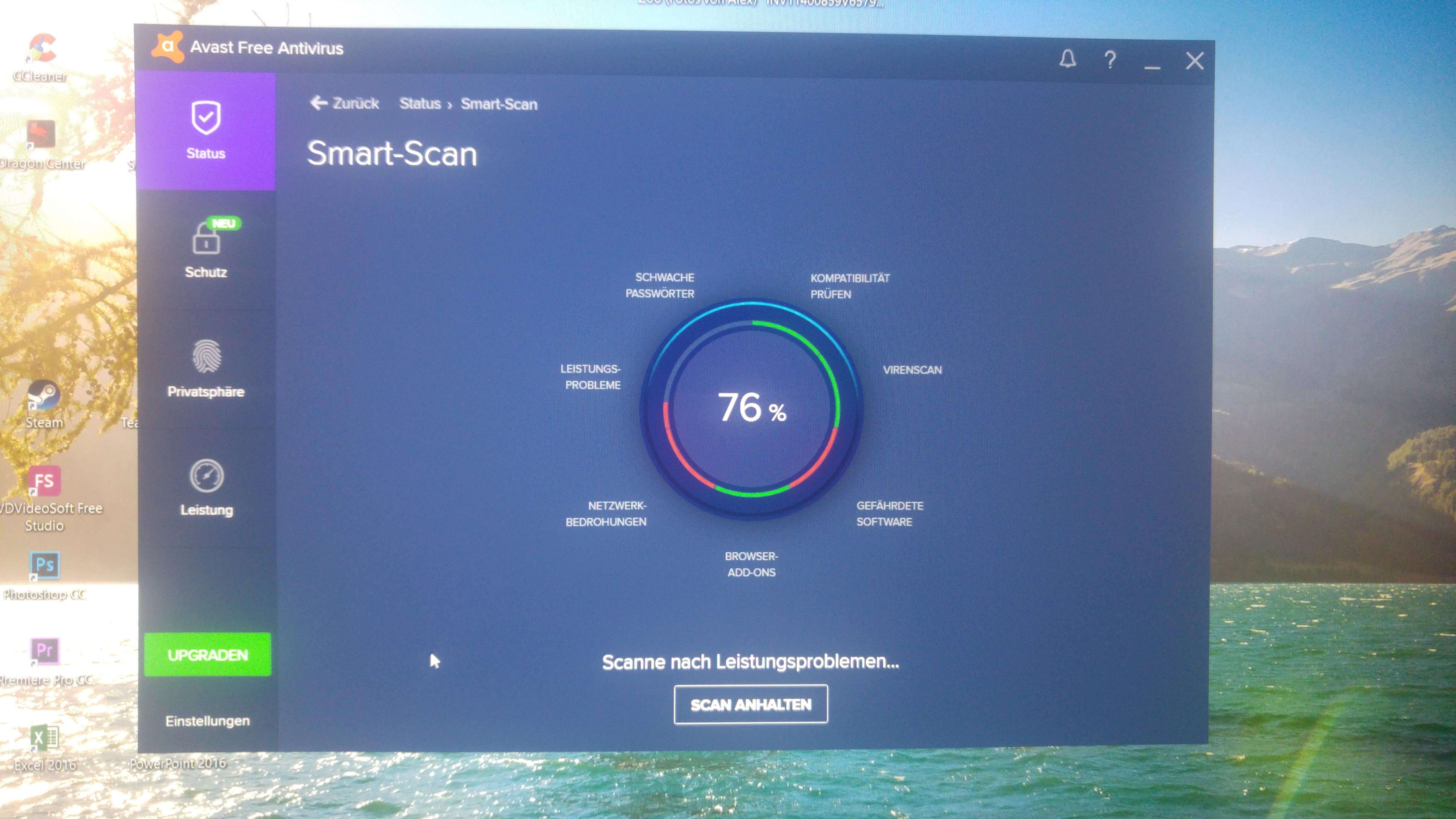 Ich habe aber auch aktuell Avast Free Antivirus am durchlaufen. Bei 76% beim Punkt "Leistungsprobleme" bleibt es schon seit 40 Minuten stehen.