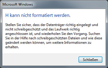 Die formatierung wurde nicht fehlerfrei durchgeführt.