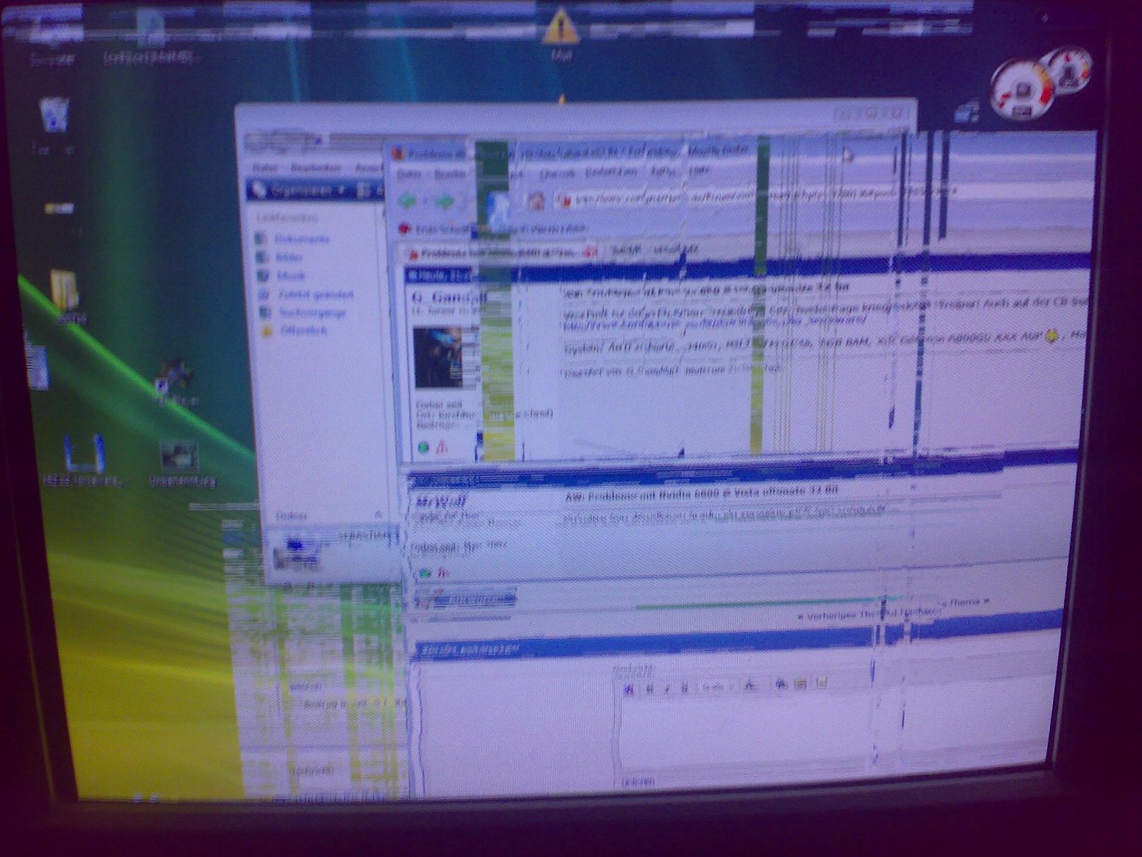 Wenn ich die Nvidia Treiber deinstalliere und die Standart Treiber benutze,gibt es keine Probleme,abgesehen davon,dass die 3D Effekte nicht funktionieren... (diese funktionieren komischer weise auch nicht wenn die Nvidia Treiber drauf sind!) wenn ich die Treiber wieder drauf schmeisse habe ich wieder Bildfehler