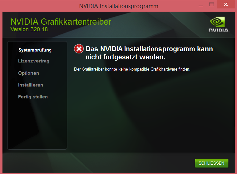 "Stereoskopische 3D" soll durch die Installation der GeForce 3D Vision Software installiert werden, jedoch bekomme ich bei der Installation die Fehlermeldung: "Warnung! Dieser Treiber ist für eine frühere Grafiktreiberversion bestimmt. Laden Sie bei nvidia.com einen neueren Stereo-Treiber herunter." Wenn ich den Grafiktreiber installieren will der von der Installationscd gefordert wird bekomme ich allerdings die Fehlermeldung: "Das Nvidia Setup Programm konnte keine Treiber finden, die mit der aktuellen Hardware kompatibel sind. Das Installationsprogramm wird jetzt beendet."