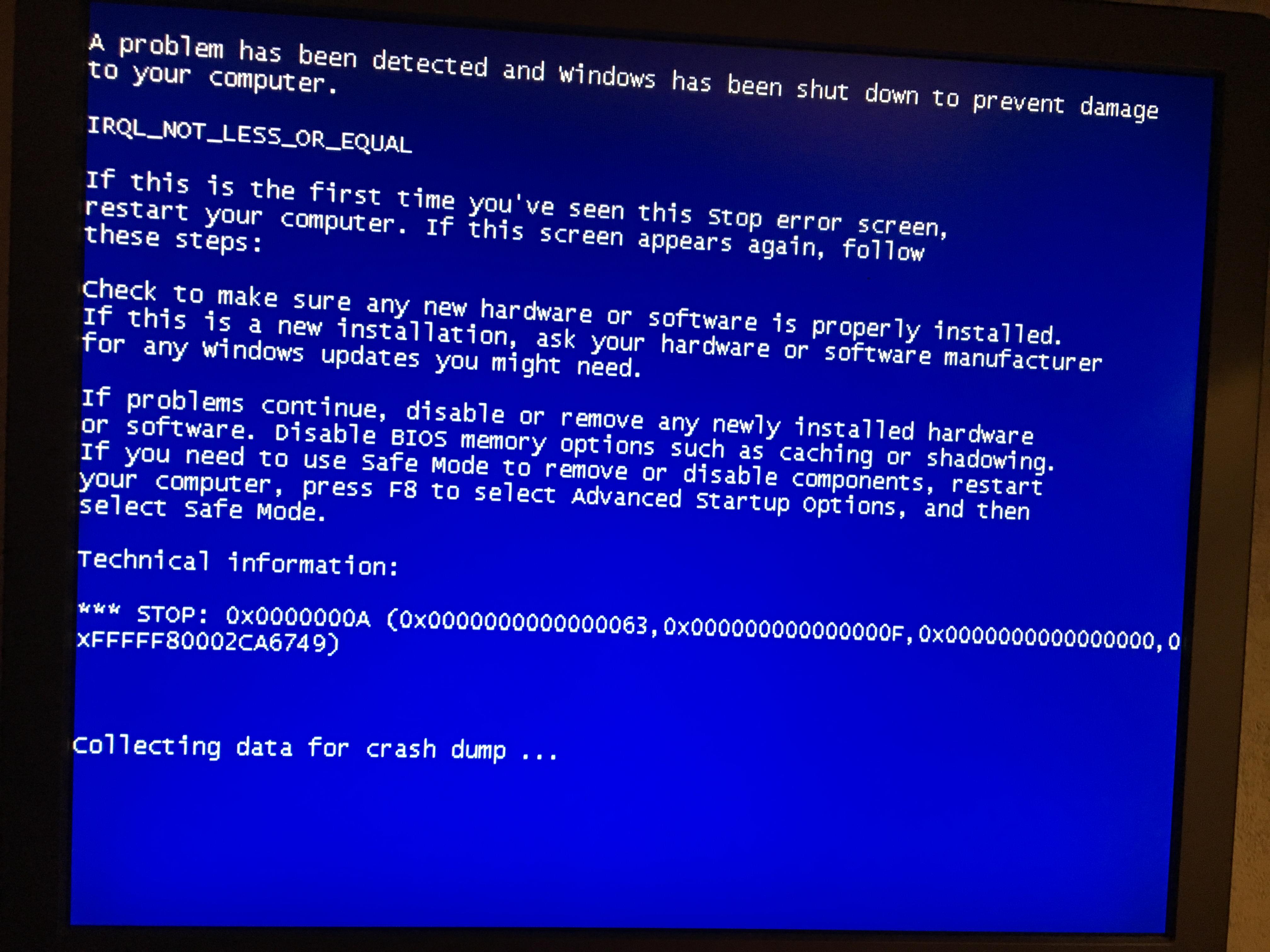Ist man nun einmal im Desktop gelandet friert der Bildschirm meist noch 2-3 mal ein, entweder unmittelbar oder nach 1-2 Minuten Benutzung, aber auch hier gibt es mal Neustarts, teilweise ohne Hochfahren oder seltener auch mal einen Bluescreen (Beispielbild).
