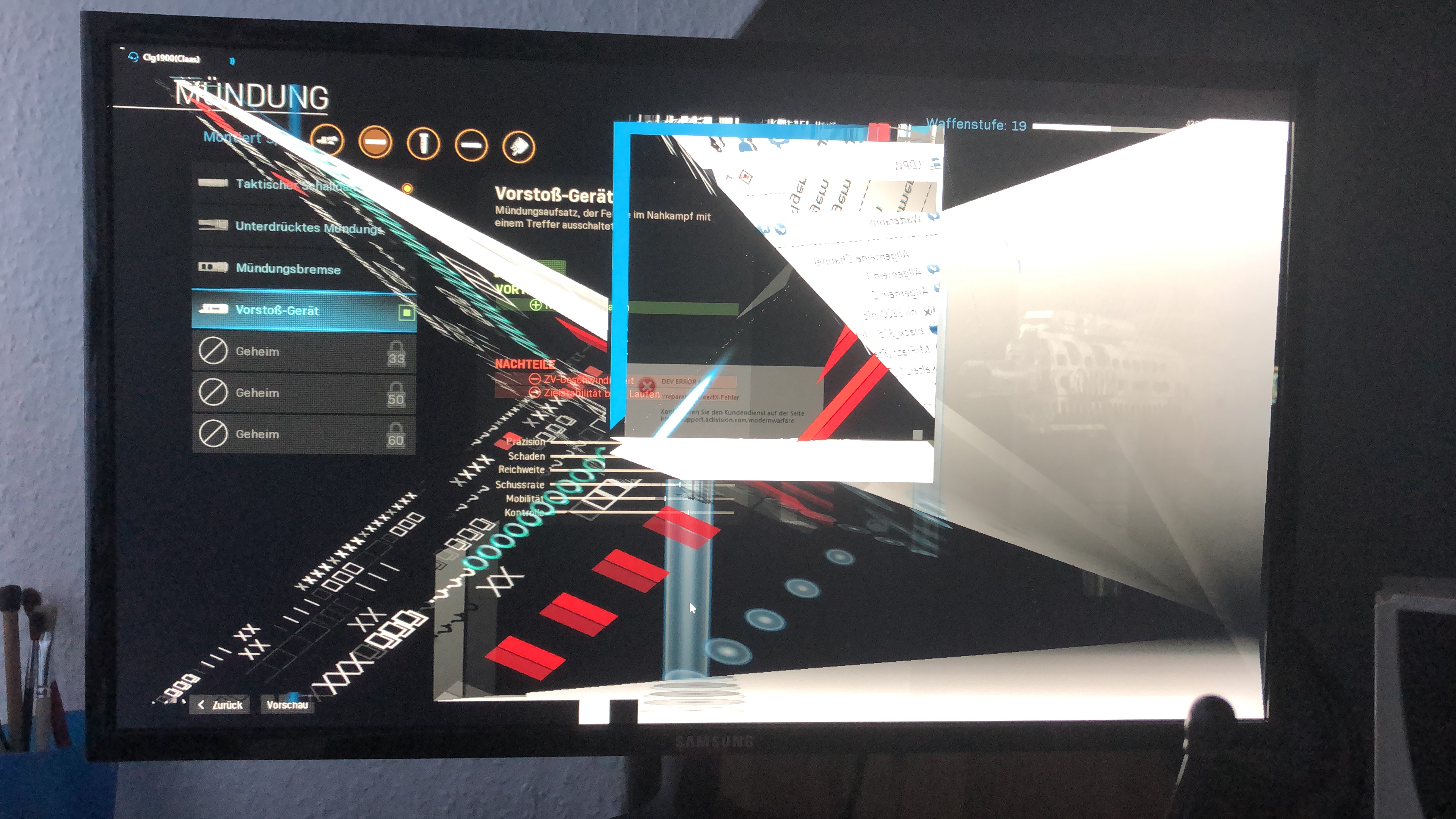 Ich habe seit geraumer Zeit Probleme mit meiner Grafikkarte. Die Probleme haben seit letztem Jahr angefangen. Während des Spielens sind die Spiele abgestürzt. Es hat angefangen mit einfachen Bildrucklern, welche sich in Große Schwarze Flächen entwickelt haben. Daraufhin stürzte das Spiel ab und in einem Fenster wurde mir angegeben, dass es einen Grafikkartenfehler gegeben habe und man die Treiber aktualisieren soll (dies bewirkte rein gar nichts).
