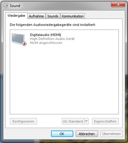Ich bekomme die Fehlermeldung 'Es sind keine Lautsprecher oder Kopfhörer angeschlosssen' einfach nicht weg. Seit dem Mainboardwechsel letzte Woche von einem Asus P8H67-V habe ich diesen Fehler.