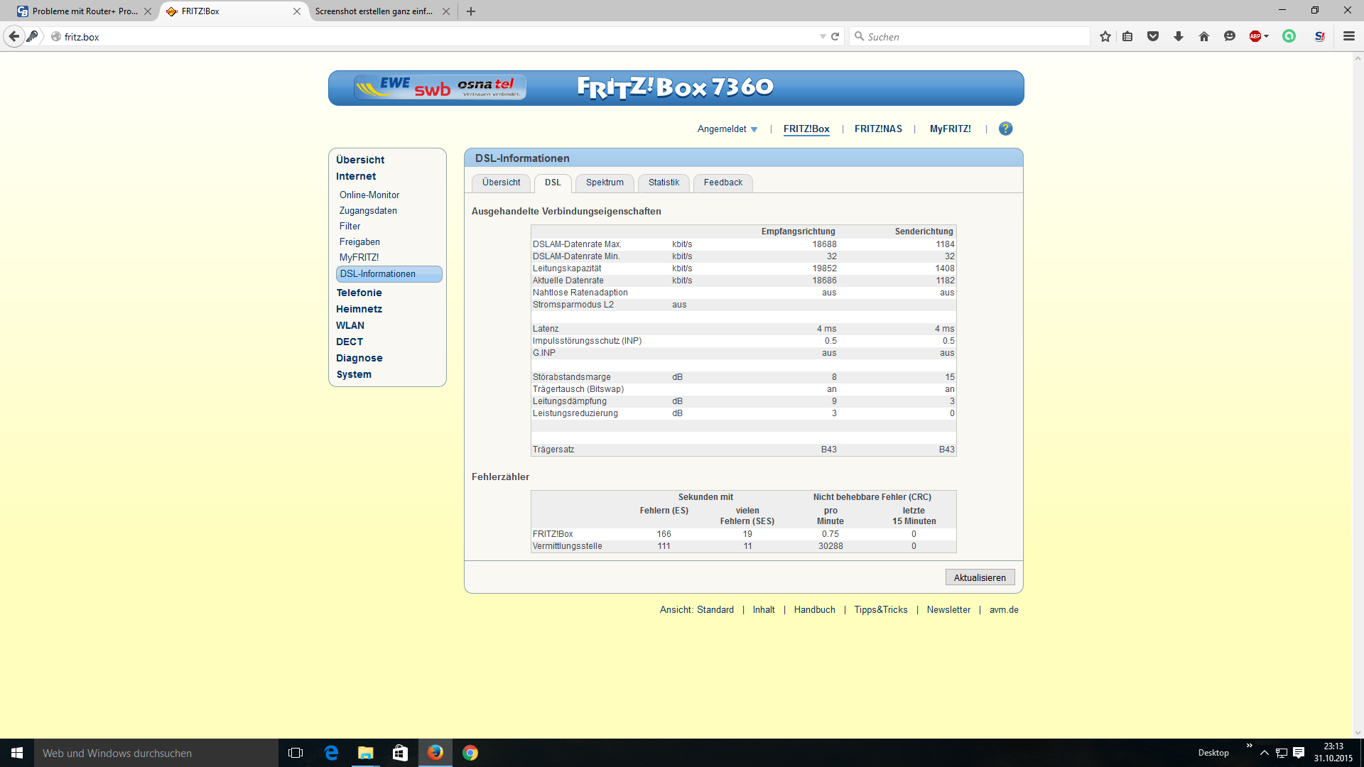 ich habe gestern meine Fritz-Box zurückgesetzt da diese ständig Verbindungsabbrüche bekam. Nun läuft alles wieder soweit stabil, was mich allerdings wundert sind die 40 k+ (!) nicht behebbare Crc-Fehler. Angeblich kommen die von der Vermittlungsstelle. Sollte ich mir da jetzt Sorgen machen, ich meine 40000 ist schon eine Menge, aber wieso spüre ich dann davon nichts?