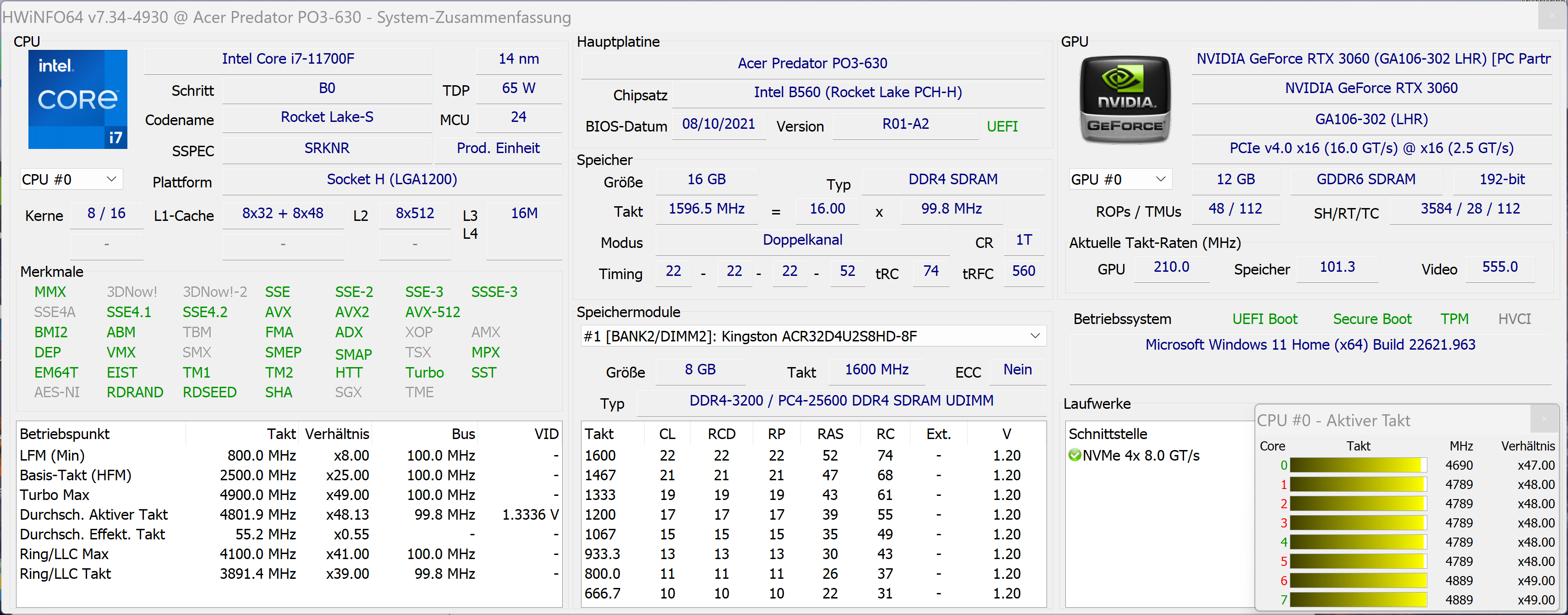 Prozessor 11th Gen Intel(R) Core(TM) i7-11700F @ 2.50GHz 2.50 GHz