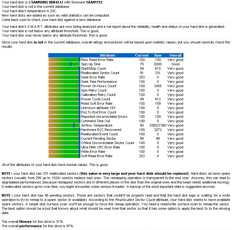 Ist das Testergebnis eigentlich schon ein Grund um die Platte bei Samsung einzuschicken?
