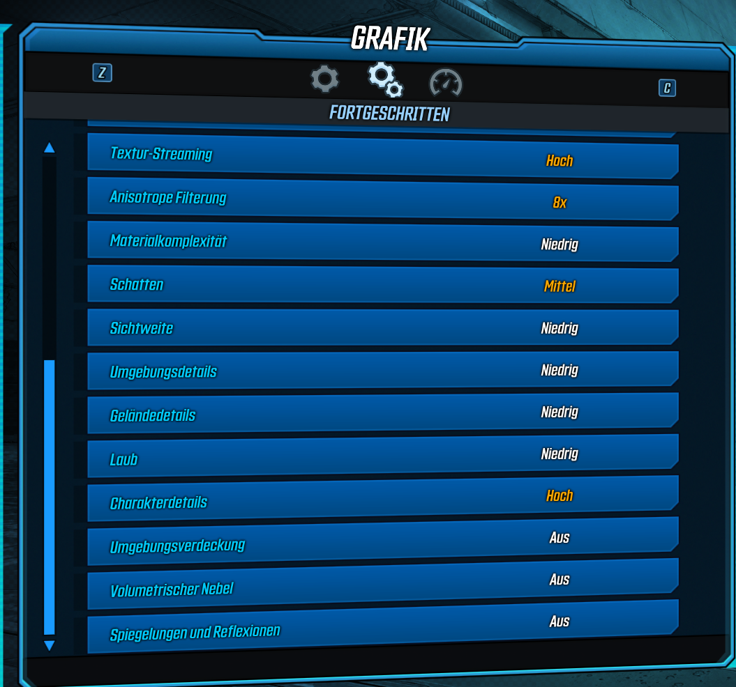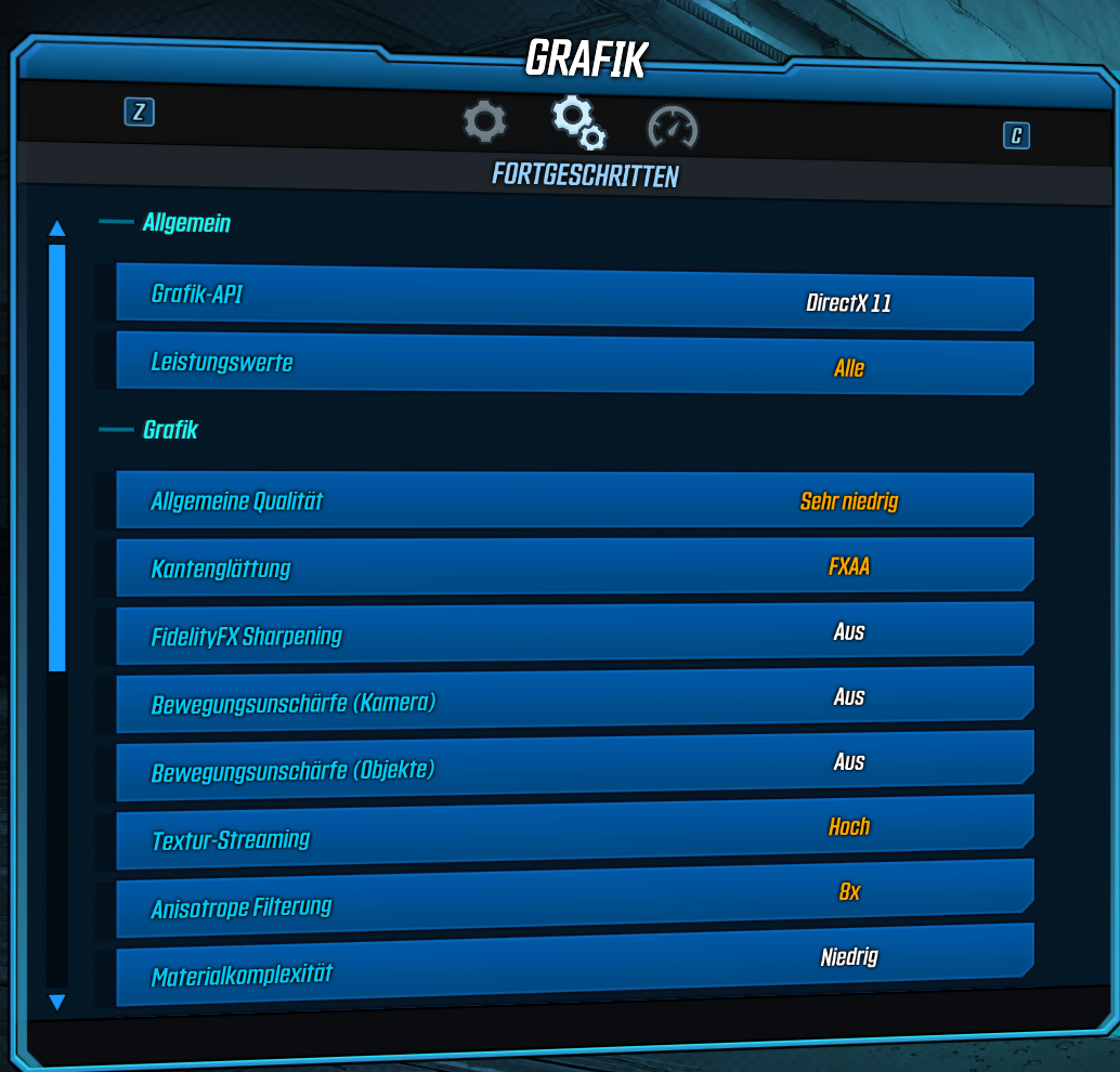 Damit waren die meisten Probleme behoben, außer beim spielen von Borderlands 3. Hier brechen die Frames bei Mittleren bis niedrigen Einstellungen in Gefechten bis auf 50 FPS ein. Ich habe auch schon alles mögliche probiert in den Einstellungen umzustellen.