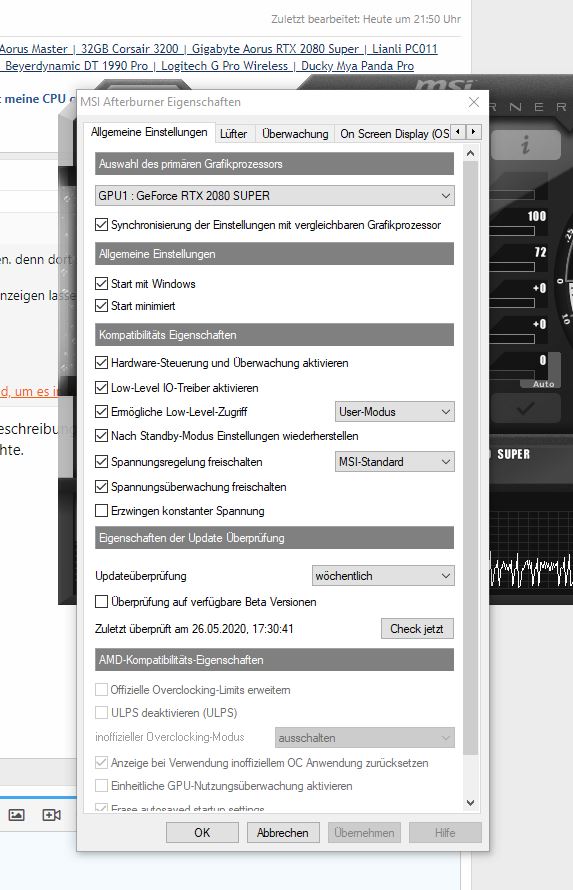 ich habe mir vor ein paar Wochen einen neuen Monitor mit WQHD Auflösung gekauft. Schnell bemerkte ich, dass mein System bei der neuen Auflösung nicht wirklich mithält, was stabile Frames angeht. Also habe ich die Grafikkarte aufgerüstet mit einer Zotac Rtx 2070 Super AMP Extreme.