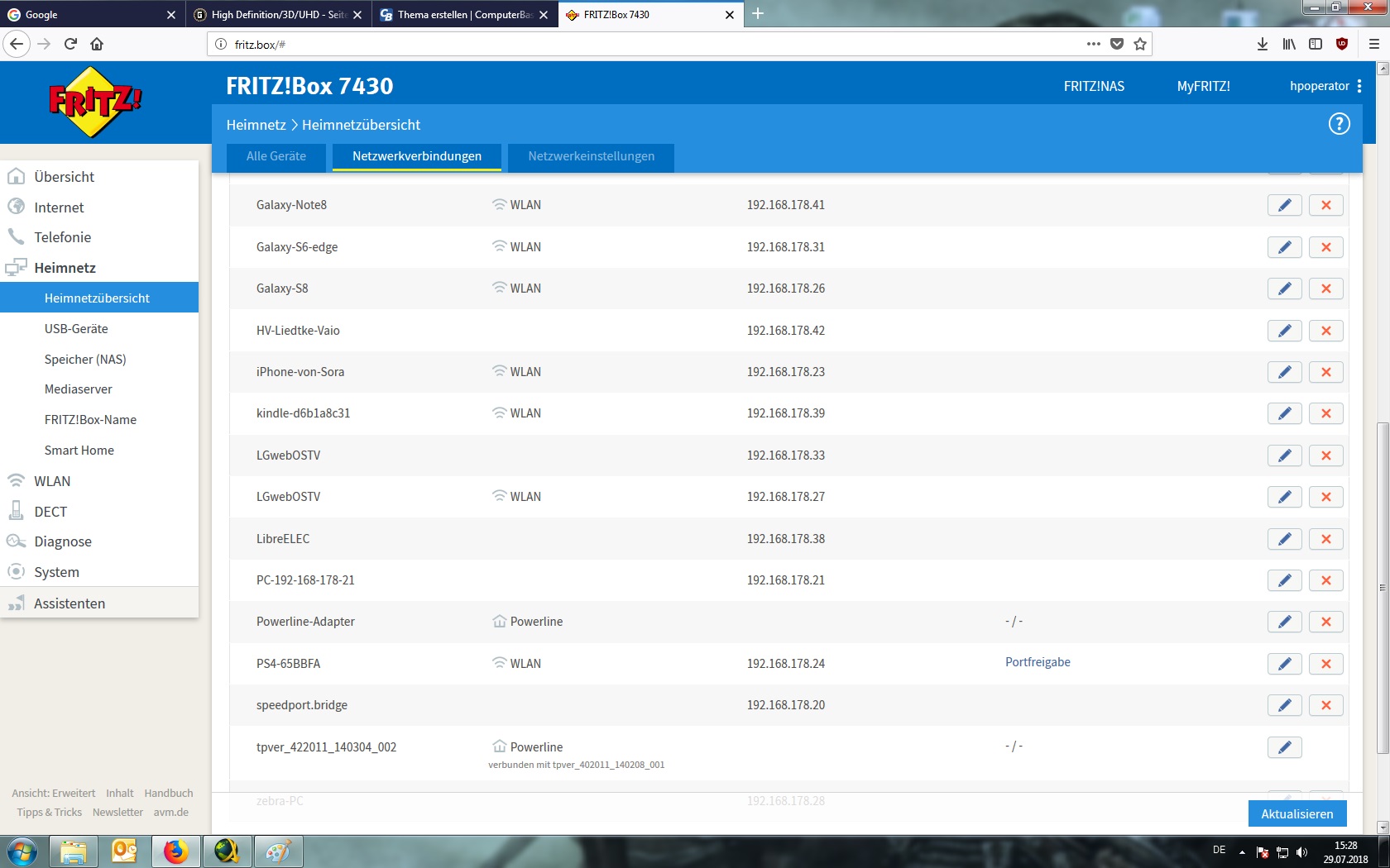 Und hier screeshots von meinem "normalen" PC und der Heimnetzwerkübersicht der Fritzbox.
