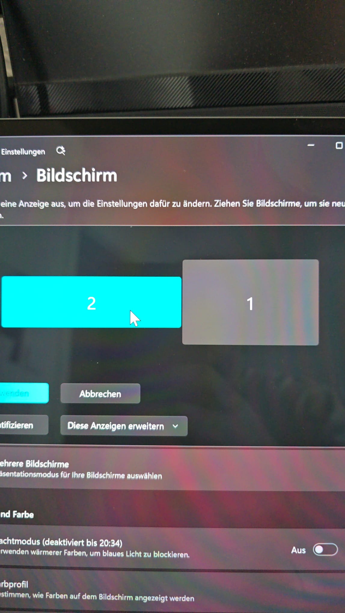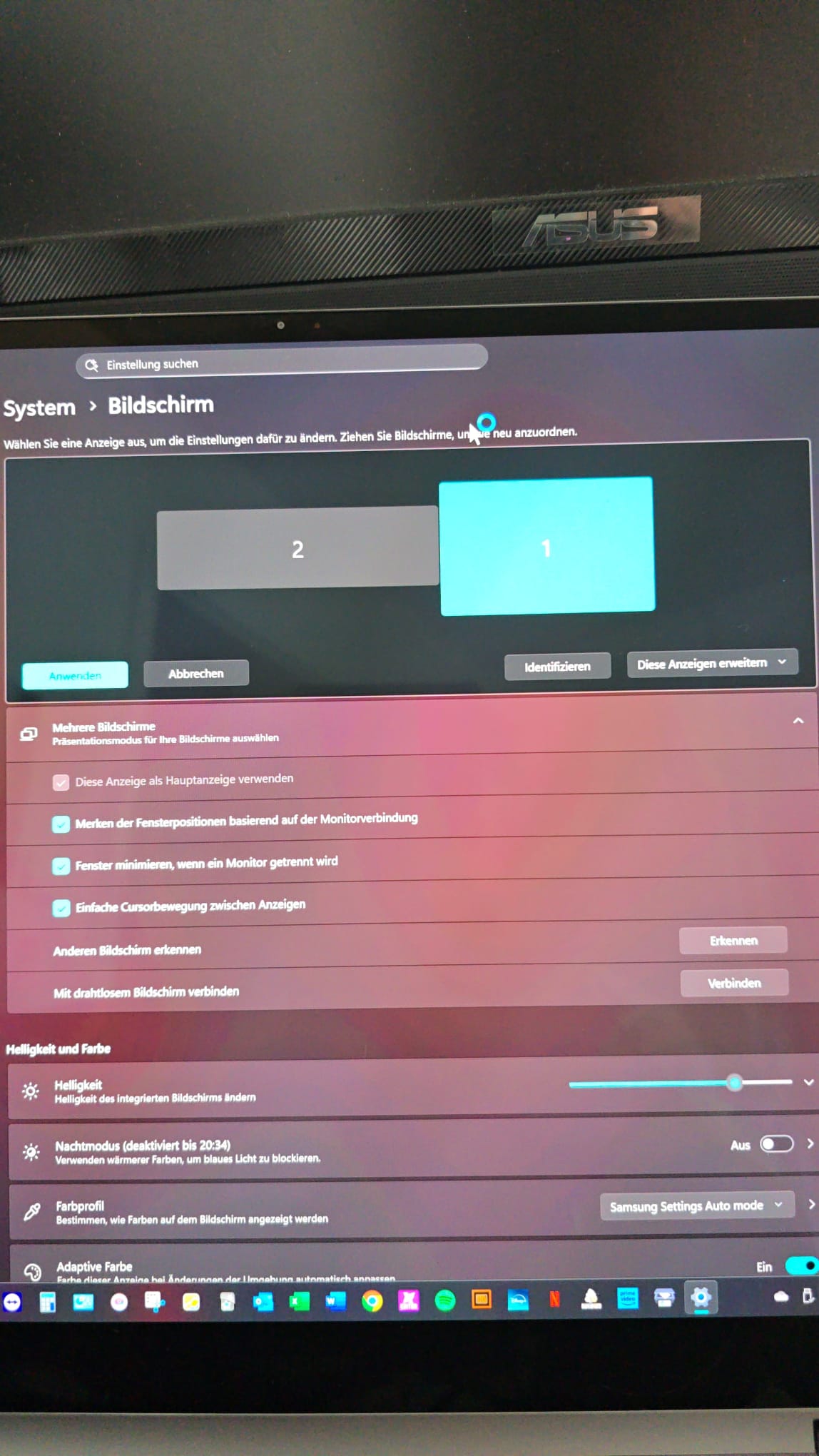 - Obwohl beide Monitore auf ihrer nativen Auflösung laufen und ich „Diese Anzeigen erweitern“ eingestellt habe, stimmt das Verhältnis nicht mehr.