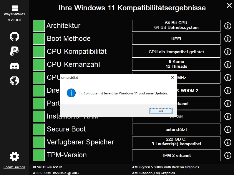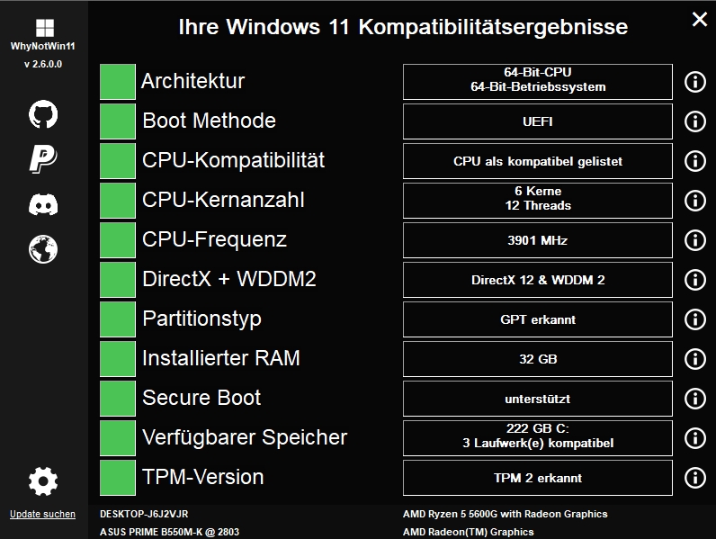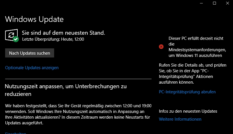 obwohl mein System nach "PC-Integritätsprüfung" Tool von Microsoft und WhyNotWin Win11 kompatibel ist wird im Update Bereich von Win10 die Meldung angezeigt, dass der PC die Mindestanforderungen für Win11 nicht erfüllt. Hat jemand eine Idee wie ich das Problem lösen kann um Win11 doch zu installieren?