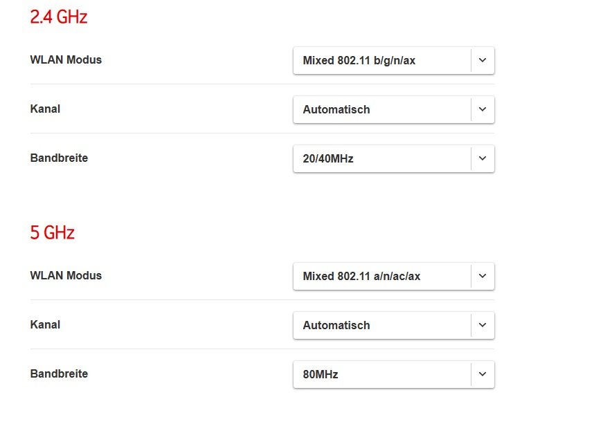 Danke für deine ausführliche Antwort mein lieber, sehr nett von dir :) Ich werde es einfach mal so lassen wie es Automatisch eingestellt war, das hat mit tests, alles prima geklappt. Ich hatte einfach die vermutung, dass wenn ich soviel in der auswahl lasse wie z.b n/g/a/ax/ac bla bla, der Router eventuell mit der zeit verbindungprobleme aufweisen könnte oder auch andere Probleme, deswegen fragte ich für die beste Auswahl, falls das jemand weiß und ebenfalls Vodafone benutzt, danke nochmals :) <3