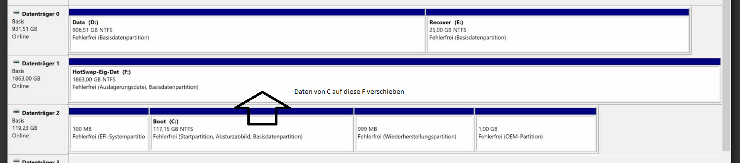 Die im Hotswap habe ich selbst reingesetzt das ist eine SSD, die nutze ich für "Eigene Dateien" allles was ich regelmässig brauche und aktuelle Fotos/Videos. Die soll eigentlich so bleiben.