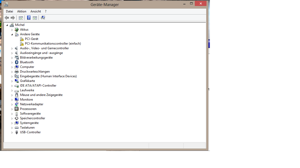 folgendes Problem: Ich habe mir vor kurzem bei Acer einen Laptop ohne Betriebssystem gekauft, dieser wurde allerdings jetzt mit einer (angeblich standardmäßig) linux lite version ausgeliefert. dementsprechend habe ich die Festplatte formatiert und Win8 64bit installiert. ich habe außerdem die auf der HP von Acer angegebenen Treiber installiert. leider finde ich aber keine treiber für "PCI-Kommunikationscontroller (einfach)" und "PCI-Gerät".