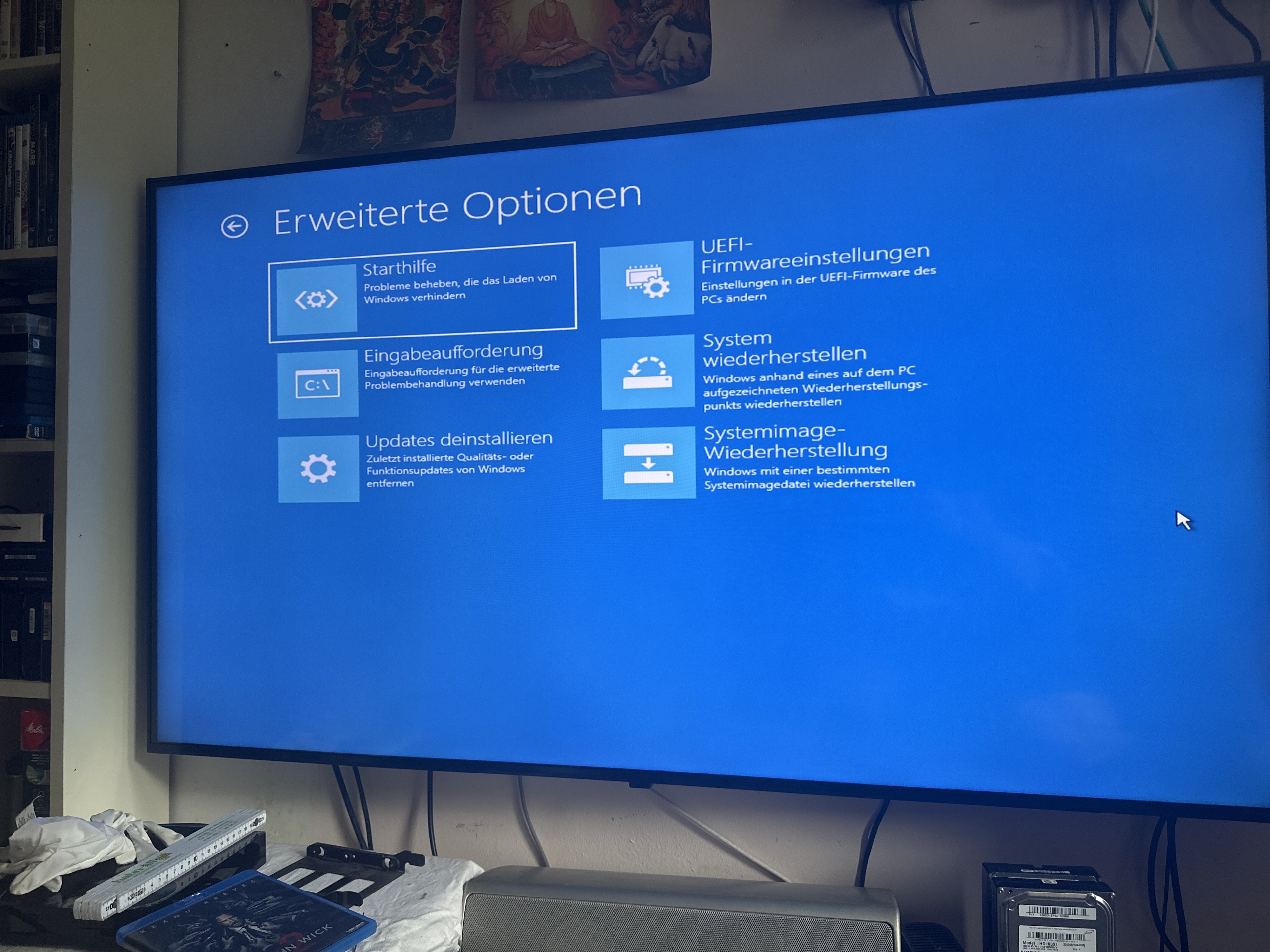 Hallo an alle ich habe das Problem, dass bei mir Windows 10 nicht startet. Es passieren nur diese drei Dinger siehe Bilder. Ich habe seit gestern nichts am Windows verändert. Meine M2 Disk wird einwandfrei erkannt und im BIOS ist auch alles ordnungsgemäß eingestellt. Weiß einer vielleicht woran das liegen kann und wie ich das beheben kann. Die Option Starthilfe kann das Problem nicht beheben. System wiederherstellen und System. Image Wiederherstellung funktioniert nicht da da nichts gefunden wird so Wiederherstellung Updates. Deinstallieren funktioniert auch nicht. Ich bin mit meinem Latein am Ende.