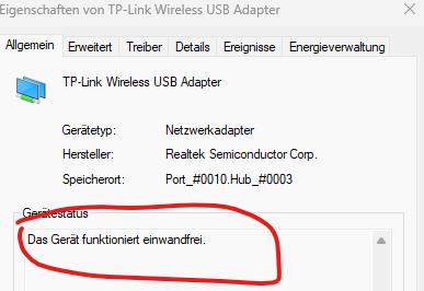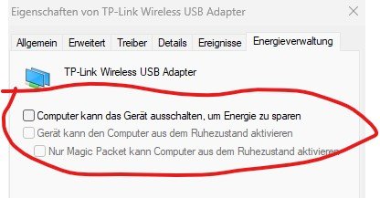 Und Gerätemanager zeigt keine Fehler, Energieverwaltung auch deaktiviert, siehe Screenshot