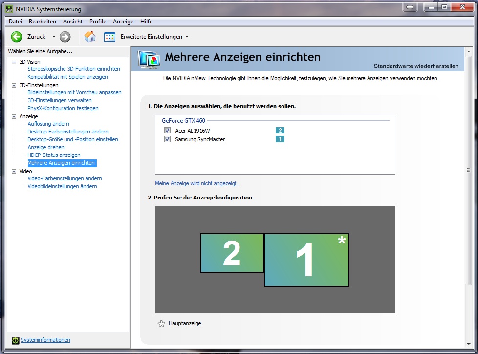 Ich habe bisher immer 2 Bildschirme benutzt und ich kann mir nicht vorstellen, dass eine GTX 460 nur eine Anzeige unterstützen kann!!!