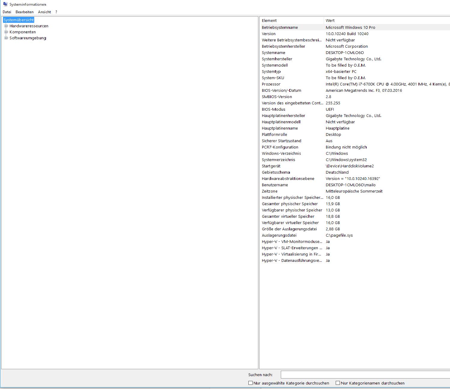Als Befehl diesmal msinfo32, dann steht BIOS-Modus: UEFI irgendwo zwischen Prozessor und Hauptplatinenhersteller. Wenn dort statt UEFI "Vorgängerversion" steht, ist es keine UEFI-Installation.bme420 schrieb:Woran erkenne ich denn, ob das jetzt eine UEFI-Installation ist?