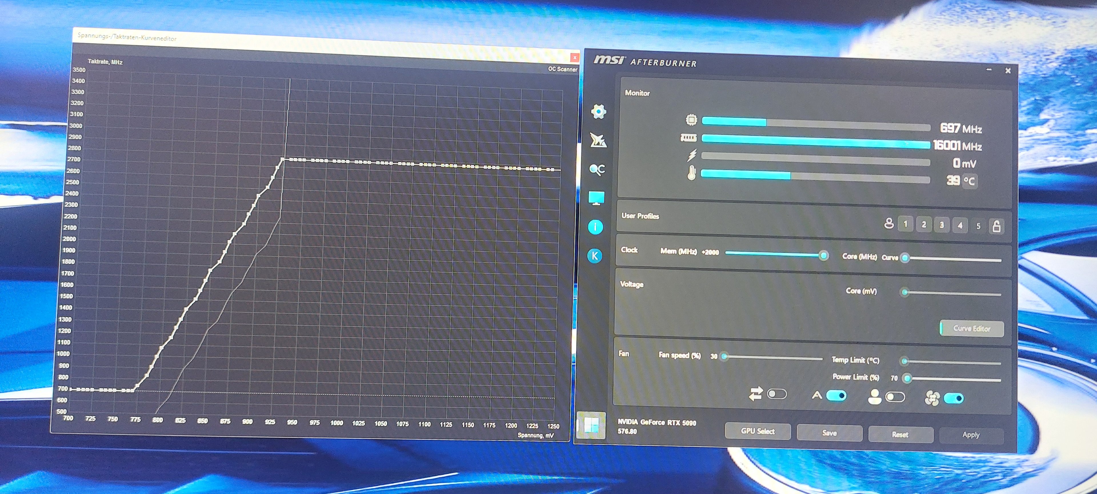 Mit UV holst du wieder was an Grafikleistung raus, weil du dann pro Takt weniger Energie brauchst. Blackwell versucht halt bei UV durch einfaches Offset immer, sein Powerlimt zu erreichen. Die Takt/Spannung Kurve in MSI Afterburner reguliert das aber recht genau. Die ist auch in ein paar Sekunden erstellt, wenn man seinen maximalen Spannungswert festgelegt hat. Siehe z.B. hier. (danach natürlich nicht das Powerlimit auf 100% ziehen wie im Video.)