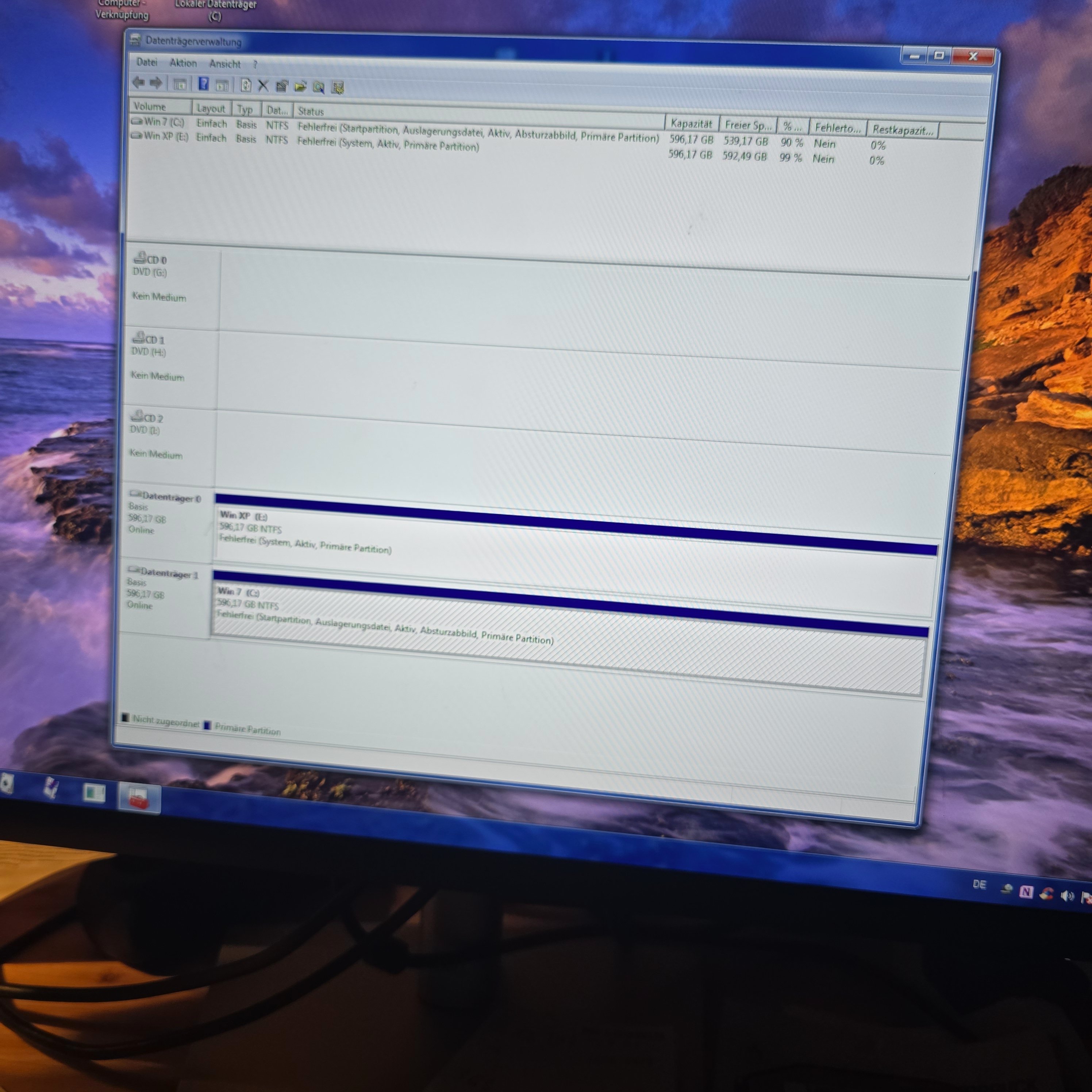 Meine Idee wäre, eine der beiden Festplatten wieder in 2 Partitionen teilen. Jeweils XP und WIN 7 getrennt auf den Partitionen installieren.