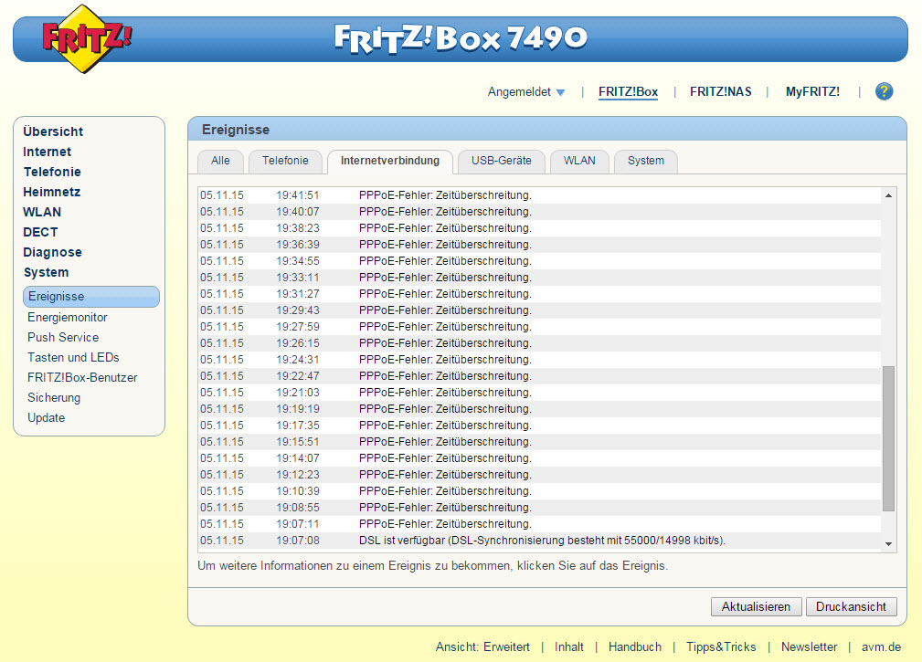 Der Router ( Fritzbox 7490) kriegt einen richtig guten Sync