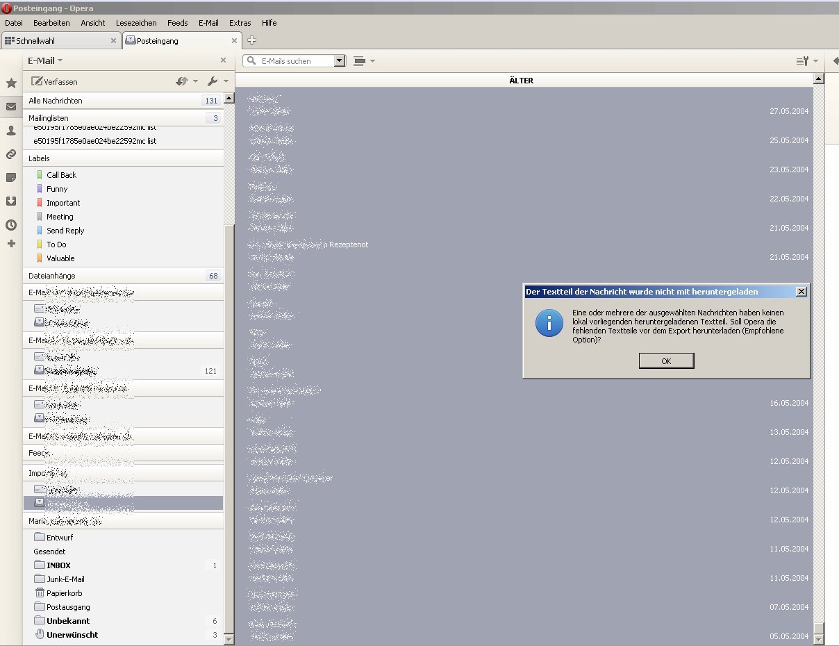 Das einfachste wäre ja, die Mails per IMAP hochzuladen - doch das geht auch nicht, ich bekomme eine Abfrage, die Ja oder Nein erfordert, aber nur "OK" bietet (Mails sind teilweise über 10 Jahre alt!!!):