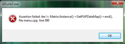 Seit meinem letzten Bios Update (Mai 2017) hatte die AI Suite einen Fehler gebracht der mich genervt hat. Der dann regelmäßig mit diesem Fenster endete.