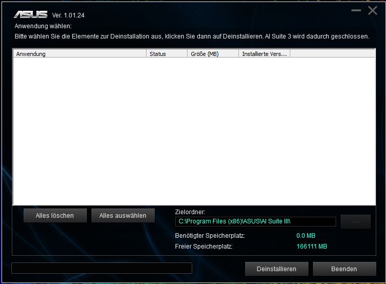 Nun zu meiner Frage. Wie bekomme ich AI Suite wieder neu installiert? Achja. Der Ordner auf den sich das leere Fenster der AI Suite bezieht ist nicht mehr da.