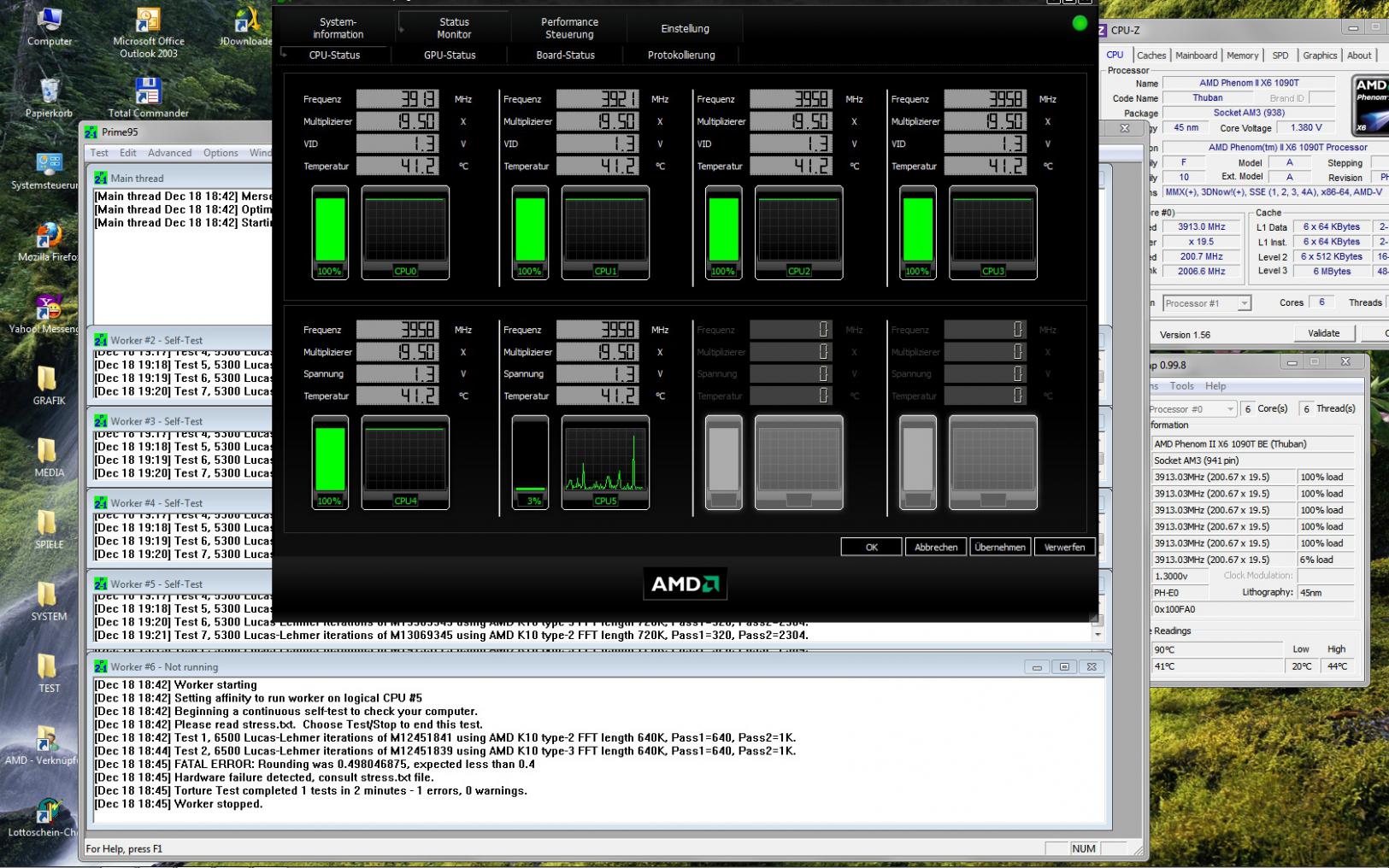 Prime 95 brauch den Test für den 6ten Kern nach 3 Minuten ab. Alle anderen Kerne laufen jetzt seit 1 Stunde ohne Probleme.