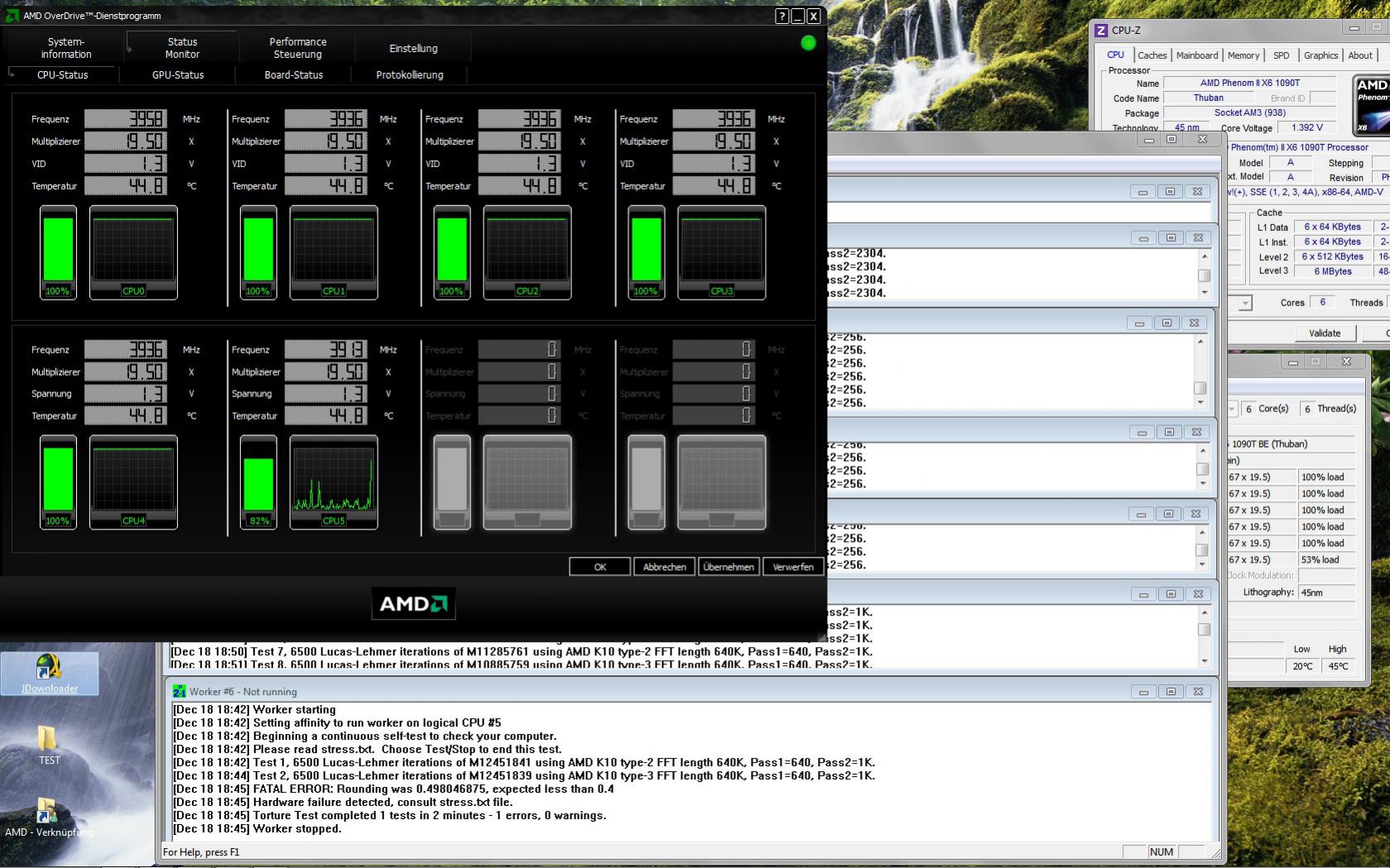 Starte ich allerdings eine zusätzliche Anwendung zum laufenden Prime 95 ( in dem Fall JDownloader ), zeigt der 6te Kern im AMD Overdrive Monitor wieder Aktivitäten ( siehe Bilder )