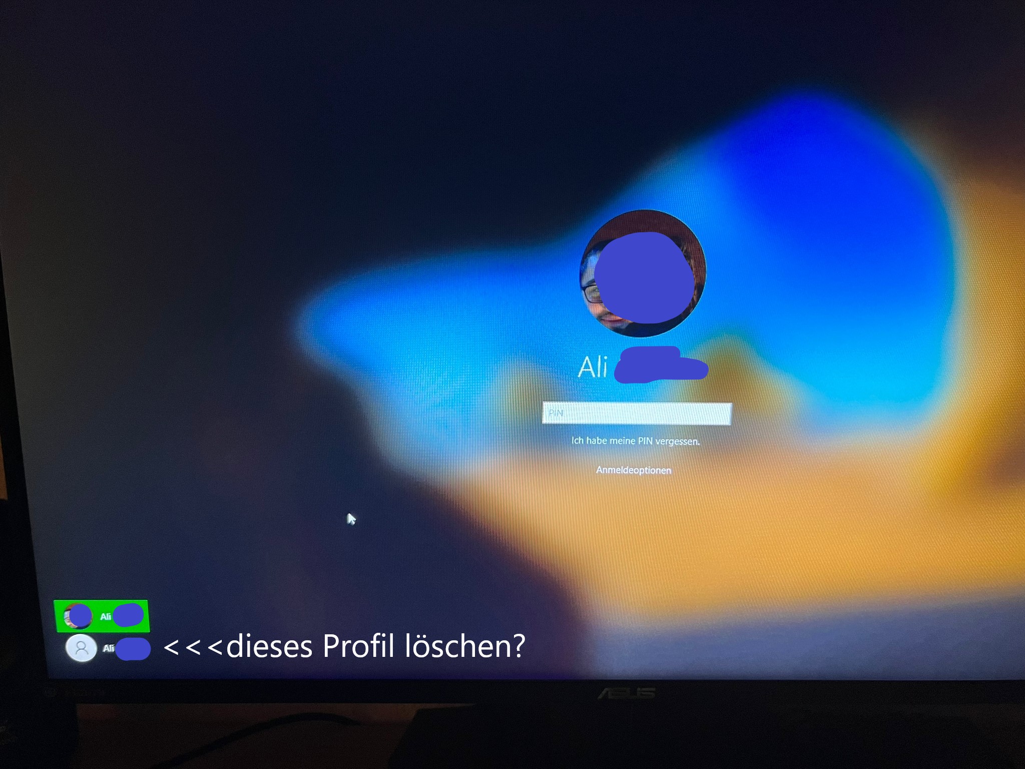 Nur bei der Anmeldung zeigt mir Win immer, dass das Passwort oder der Benutzername falsch sei. Dabei bezieht sich dies auf ein Benutzer ohne Profil. Es sind zwei vorhanden eines mit Profilbild ausm Windows Account, der andere weiß ich nicht woher der aufgetaucht ist.