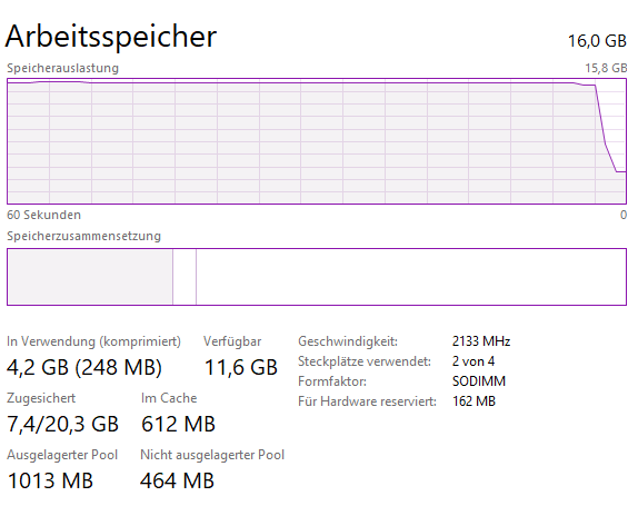 Heute das Gleiche, Magix Video Deluxe läuft nicht sauber und mein Browser crasht ständig. Habe ein wenig nachgeforscht und der RAM läuft hart an der Grenze. Vorher war das definitiv nicht das Problem.