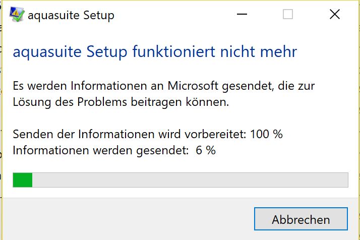 Das Programm Aquasuite ging aufeinmal nicht mehr. Danach hab ich es mal deinstaliert. Wenn ich es jetzt neu installieren möchte kommt folgende Meldung.