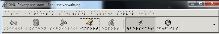 Ich habe vor längerer Zeit GPG4Win auf meinem Rechner installiert (Windows 7 Professional 64Bit). Sobald ich GNU Privacy Assistant starte, wird mir das Programm in Braille, also der Blindenschrift angezeigt. Ich habe nie was umgestellt, es war vom ersten Start an so. Da ich das Programm nicht dringend brauche und die Zertifikate über Enigmail verwalten kann, habe ich es erstmal dabei belassen.