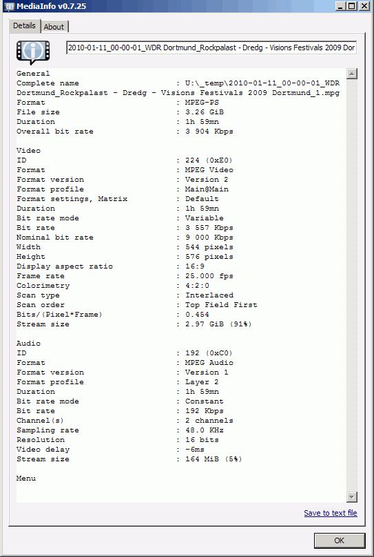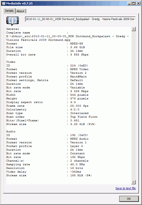 Die Ausgabe erfolgt als .mpg - Datei (mpeg2 - Programmstrom, "MPEG program stream/DVD (libavformat)"). Das kann man sich einerseits mit vielen Hard- und Softwareplayern direkt ansehen, andererseits gut zu einer