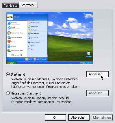In sich öffnenden Fenster auf den Reiter "Startmenü",