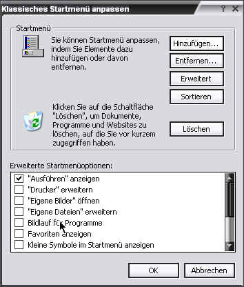 und unter "Startmenüelmente"