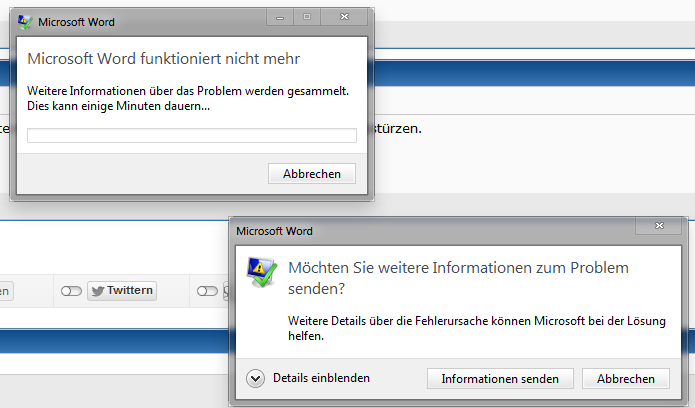 Vorhin hatte ich Excel öffnen wollen, allerdings stürzt das Programm schon direkt am Start ab.