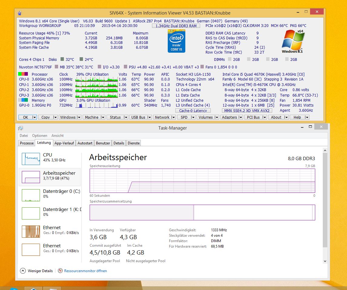 Festplatten: SSD (windows) +2 TB HDD (sehr alt).
