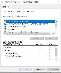 warum lassen sich keine Berechtigungen vergeben(Die Button Hinzufügen und entfernen, sind nicht anklickbar, siehe Screenshot).