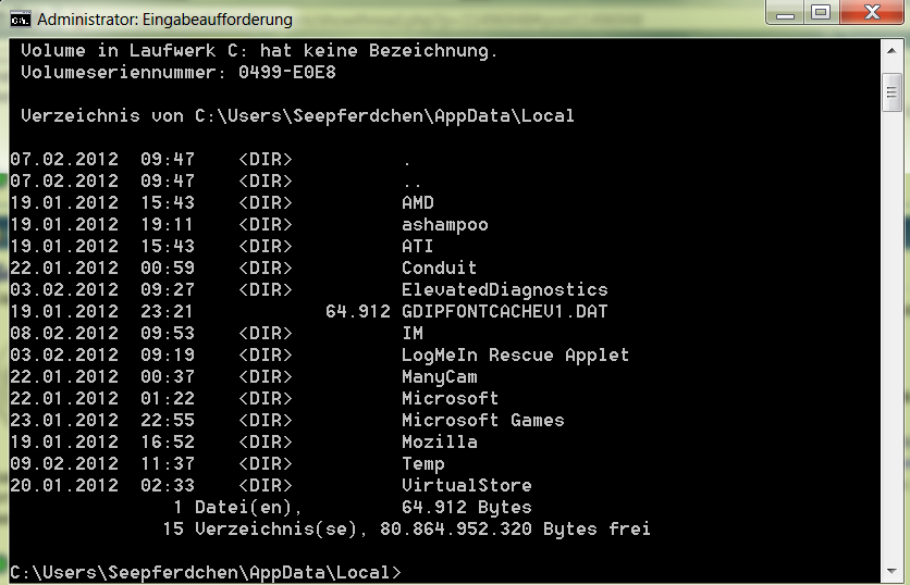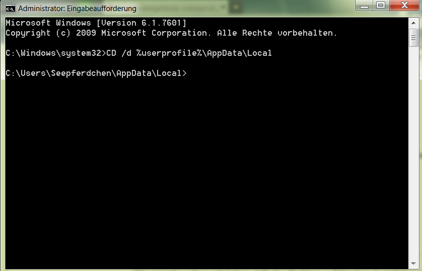 * In das CMD-Fenster CD /d %userprofile%\AppData\Local eintippen Enter drücken