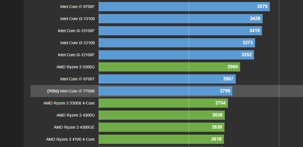 Durch den 4,8 GHz Lock und das RAM-Tuning überspringen wir faktisch vier bis fünf Hardware-Generationen. In realen Gaming-Szenarien zieht mein i7-7700K mit der Performance von Mittelklasse-CPUs der 10. und 11. Generation (wie dem i5-11400F) gleich. Das beweist: Ein perfekt abgestimmtes System schlägt moderne Massenware von der Stange fast immer.