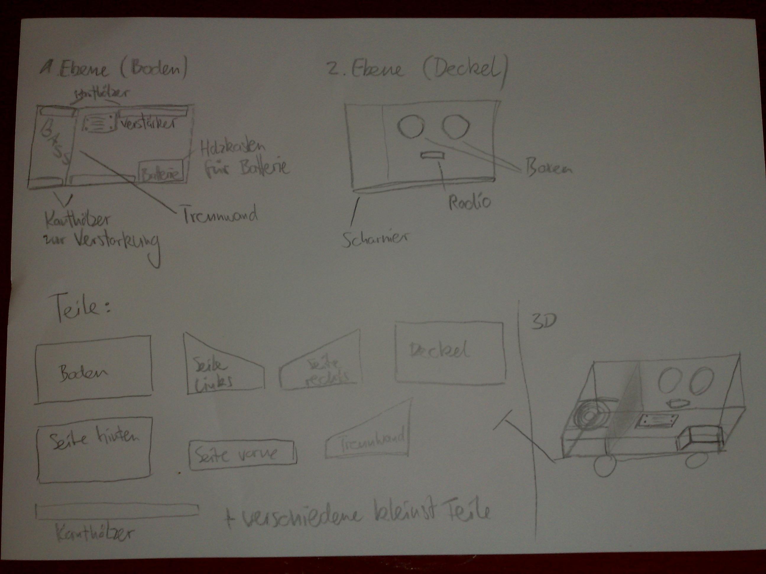 und mindestens 10 Stunden Laufzeit hat. Es sollen ein Bass und 2x 2-Wege Boxen und eine Endstufe verbaut werden. Die Lautsprecher und