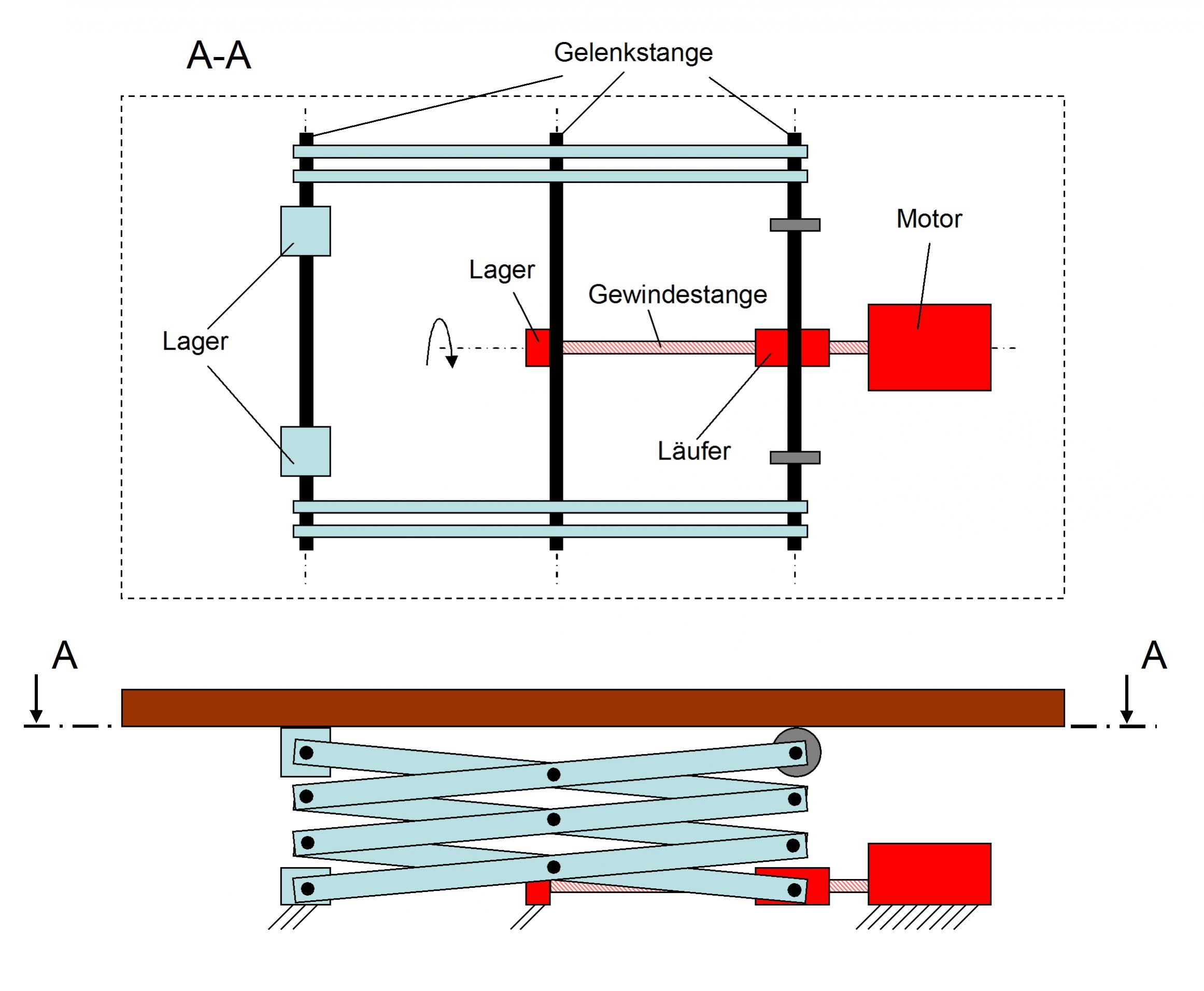 das Hochfahren an gewindestangen wär ein schöner gimmick aber ist wohl sehr anfällig kompliziert und event. auch teuer. denke auch an die Kabelwurst die du da mit hochfährst