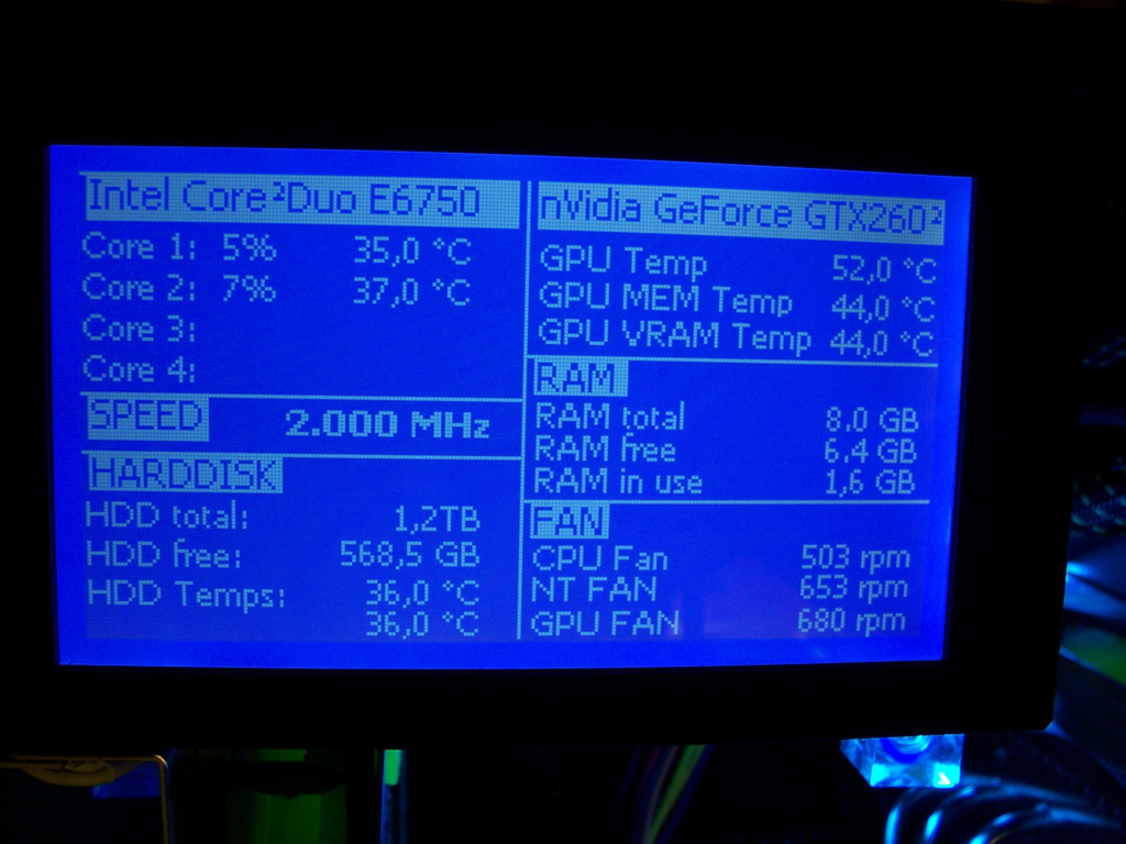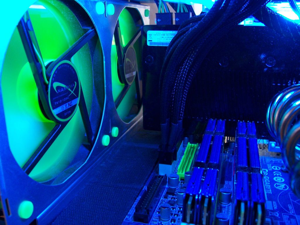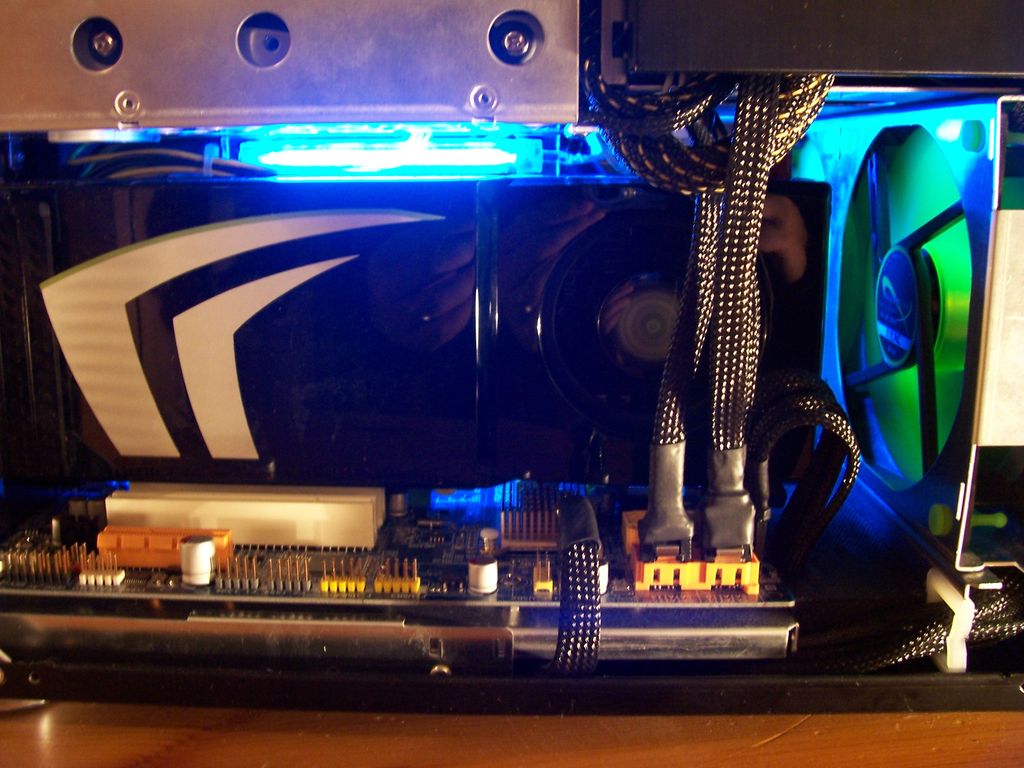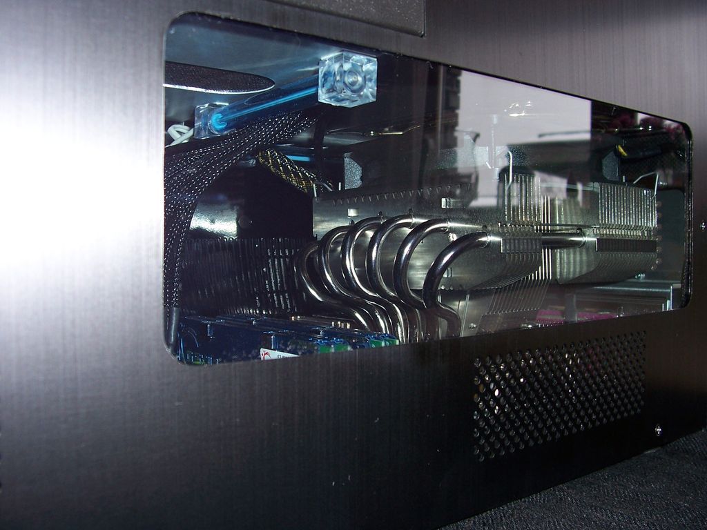 Vor der GTX260² lief eine HIS Radeon HD3870 IceQ3 im Cube. Ich war daher beim Kauf der GTX260² ein wenig skeptisch, ob es dadurch nicht zu warm ggf. vielleicht sogar zu heiß im Cube werden könnte. Aber meine Befürchtungen waren unbegründet. Selbst mit der GTX260² ist der Cube leise und kühl. Ich vermute, dass dies daher kommt, dass einer der 12cm Nanoxia Lüfter direkt in die vordere Öffnung der Grafikkarte pustet.