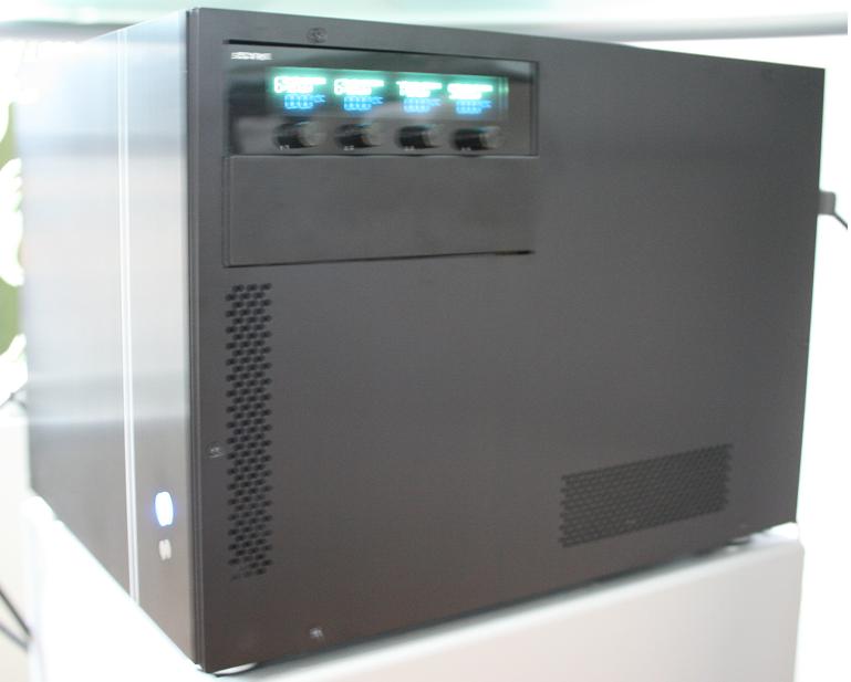 Die offene Front ist für mich ein Zugeständnis der Tatsache, dass zu wenig frische Luft vorne für die Gehäuselüfter rein kommen kann. Die Anschlüsse auf der Benutzerseite klauen darüber hinaus noch mal weitere Schlichtheit.