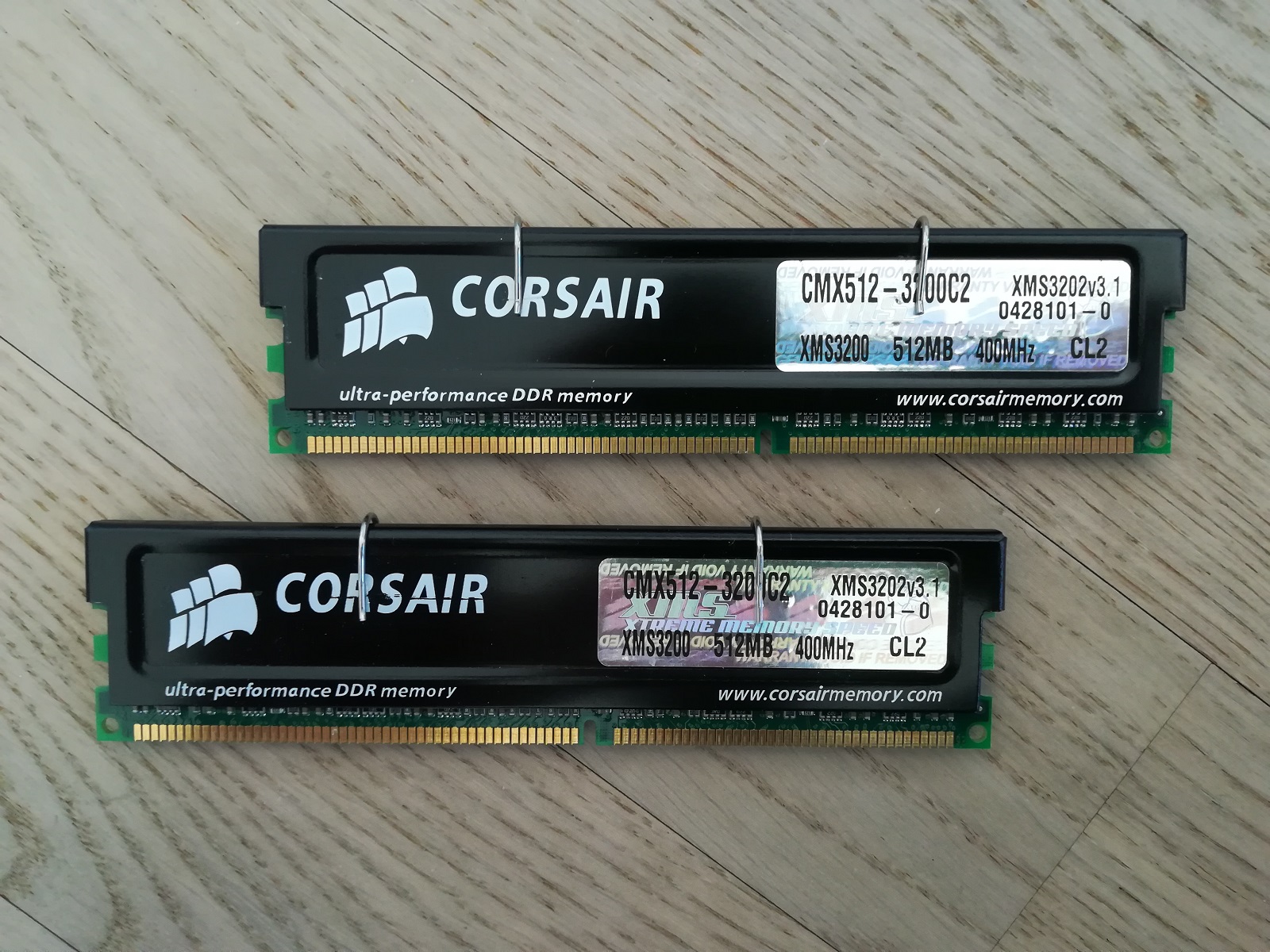 RAM: 2x 512Mb Corsair CMX512 DDR PC-400 CL2 558€