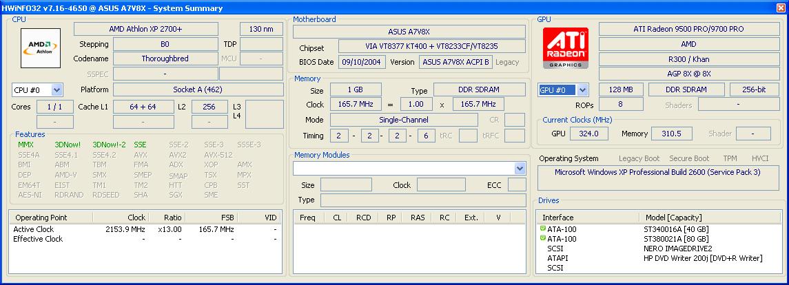 Ich kann mich leider nicht genau erinnern, damals hatte ich als 16-Jähriger jedenfalls auch einen Athlon XP (keine Ahnung welcher), eine Geforce4 Ti 4200 und später eine Radeon 9500 die per BIOS zu einer 9700 Pro gemacht wurde.
